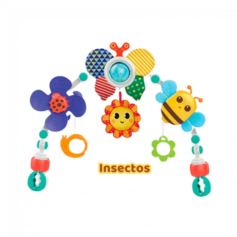 Colores brillantes hacen que el bebe se entretenga, se adapta fácilmente al coche, silla, cuna.