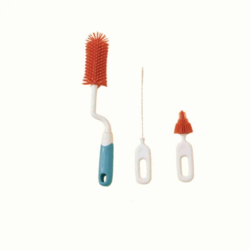 Cepillo para biberón, cepillo para tetina y cepillo para sorbete.